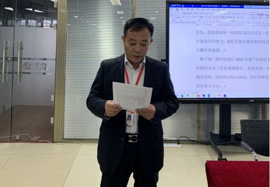 會(huì)議伊始,公司董事長于洋總發(fā)表講話。目標(biāo)責(zé)任書的簽約不僅對我們未來工作有了明確的指引,更是對每一位業(yè)務(wù)人員的責(zé)任與期望。通過簽約,我們將目標(biāo)具體化、責(zé)任明晰化,確保每一個(gè)人都清楚自己的任務(wù)與方向。希望大家從這一刻起,改變自我,以高度責(zé)任感和使命感,認(rèn)真對待每一項(xiàng)任務(wù),確保目標(biāo)如期完成。我們要以團(tuán)隊(duì)的力量,共同迎接挑戰(zhàn),創(chuàng)造更加輝煌的業(yè)績!