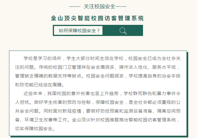 金山頂尖智能校園訪客管理系統(tǒng),切實(shí)保障校園安全