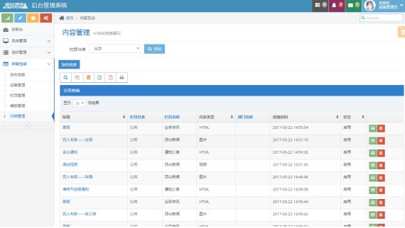 系統(tǒng)提供了不同維度的內(nèi)容發(fā)布選項(xiàng),標(biāo)題規(guī)定了發(fā)布內(nèi)容的名稱,欄目分類規(guī)定了發(fā)布欄目為公有還是私有,欄目名稱為小標(biāo)題,內(nèi)容類型可選文字、圖片、網(wǎng)址、視頻等多媒體內(nèi)容,部門顯示了發(fā)布內(nèi)容的范圍,時(shí)間和狀態(tài)顯示了基本信息。