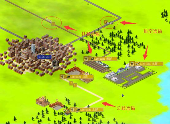而下圖中由于產(chǎn)銷地之間距離的遠近及地勢的不同,各地的資源通過航空、鐵路、公路等多種運輸方式將資源運送到需求地,也體現(xiàn)了物流鏈配送中多式聯(lián)運的思想。